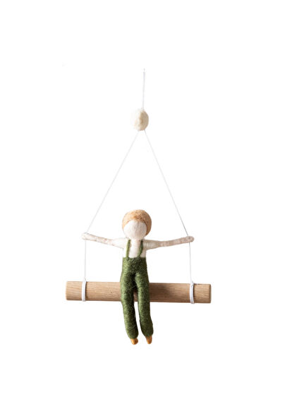 Salıncakta keyifle sallanan bir çocuk figürü, hareket ve eğlenceyi simgeler, duvarınıza sıcak ve samimi bir dokunuş katar