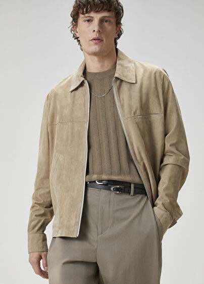 Classic collar, zipper closured, suede jacket