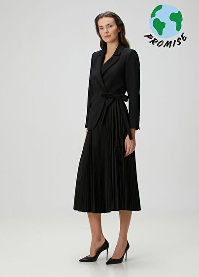 Notch lapel, drawstring waist, midi length, double-breasted dress