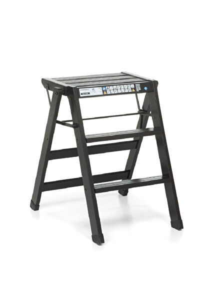 Three-step folding stool made of lacquered beech