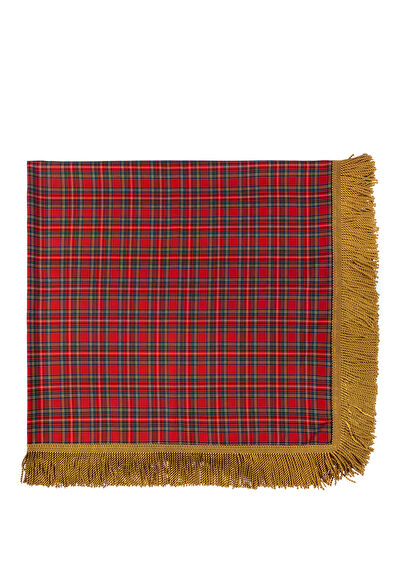 Kırmızı Ekose Desenli Püsküllü Masa Örtüsü