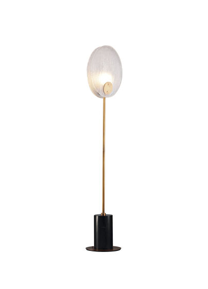 Ghana Floor Lamp adds a serene elegance to modern living spaces with its elegant tumbled metal body