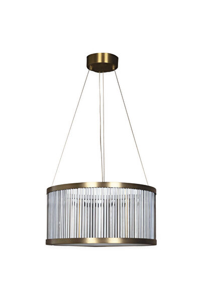 Nablus Chandelier offers a modern interpretation in a classic form by combining the elegant lines of transparent glass rods with an aged metal body