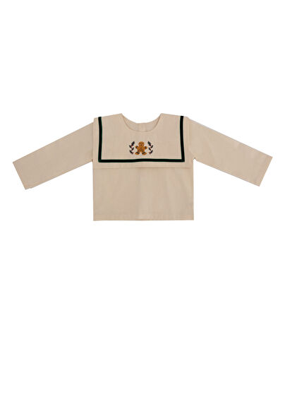 The cream-colored Christmas blouse, which can be used by the little ones both in daily use, has cookie man embroidery and colors that reflect the spirit of the New Year