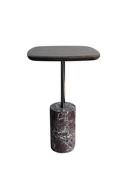 The strong character of Elazig cherry marble meets the warm texture of the root veneer to create a sophisticated silhouette