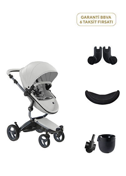mima xari strollers are designed so that none of their main parts � the seat, the main body or the cover � are fixed. In this way, the functions of the stroller can be adjusted and used if necessary. Mima xari baby strollers, whose seat unit has two different heights, offer comfort in the lower and classic stroller position and viewing pleasure in the elevated position. The viewing position allows babies to be closer to their mothers and to feel safe by communicating with them easily. Mima Xari Snow White, whose seating unit can be adjusted to face forward or towards the driver, provides three different reclining positions. In the awning with three fold adjustments that can be pulled forward and backward, the folds overlap each other and create little, medium or complete shade.
