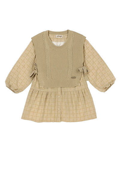 Combining the sweetness of beige with the traditional elegance of knitting, this girls' dress offers a layered and stylish look in one piece