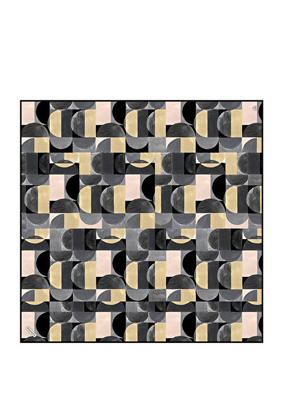 The balance patterned silk scarf, where minimal lines meet modern forms, brings together geometric shapes in a balanced and aesthetic composition, inspired by its name