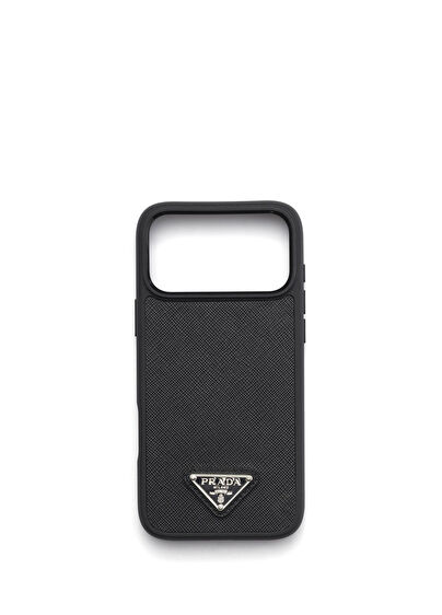 İphone 17 Pro Max Black Saffiano Leather Phone Case