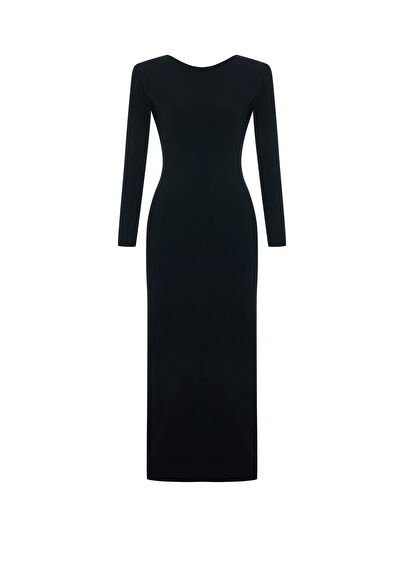 Figure-hugging, long-sleeved knitwear dress with asymmetrical open back detail