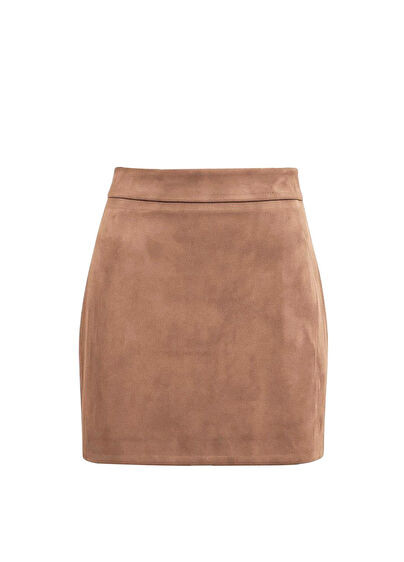 Standing out with its soft texture and modern stance, this suede mini skirt is an indispensable part of urban style The zipper detail on the back offers both practical use and a stylish look