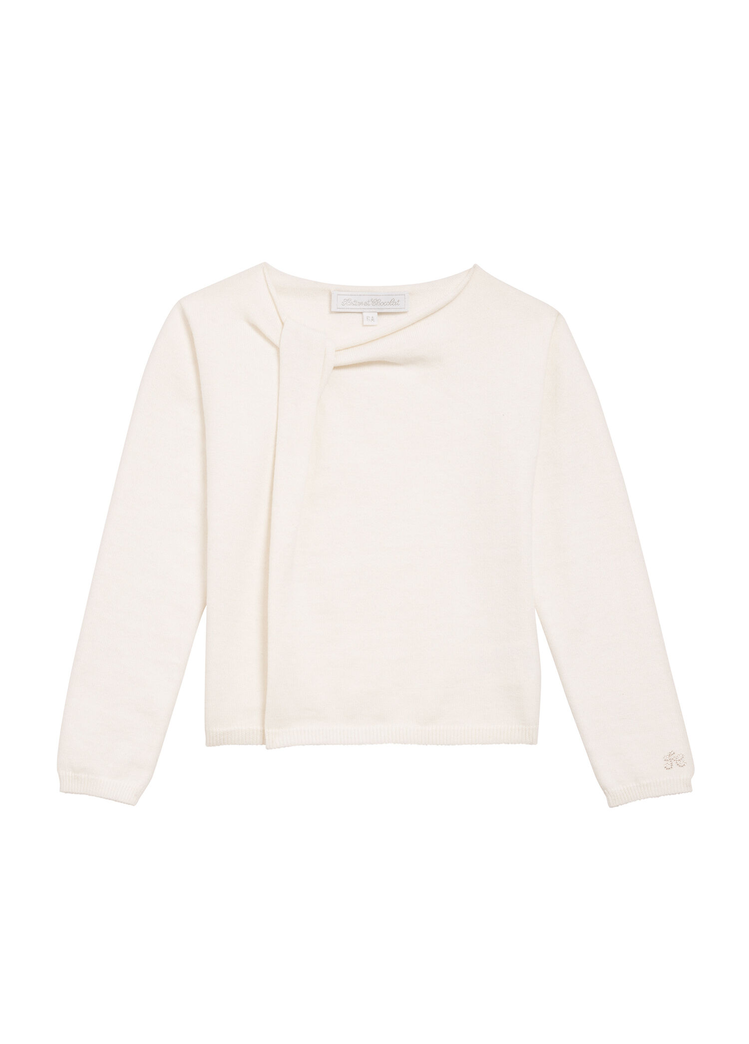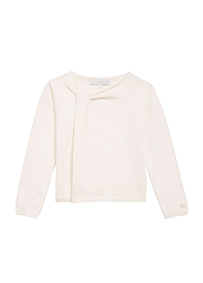 Ecru Collar Detailed Long Sleeve Girl's Sweater