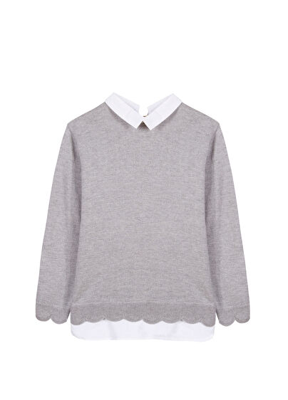 Grey Shirt Collar Grey Sweater
