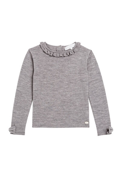 Grey Wool Crew Neck Girl Sweater