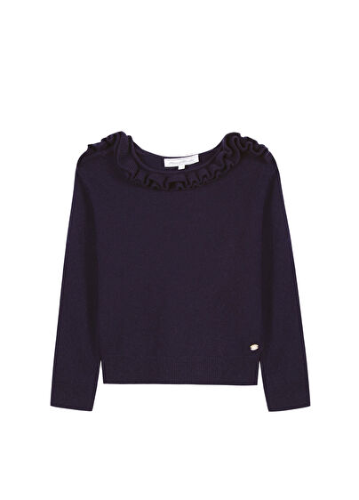 Navy Blue Wool Collar Detailed Long Sleeve Girl's Sweater