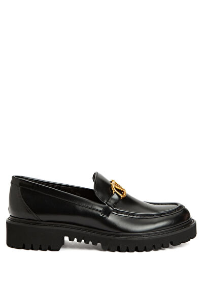 Rounded toe, logo buckle, leather loafer