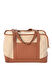 Leather pocket on the front for personal belongings; and the leather band on the back is designed to secure the bag to the suitcase during travel