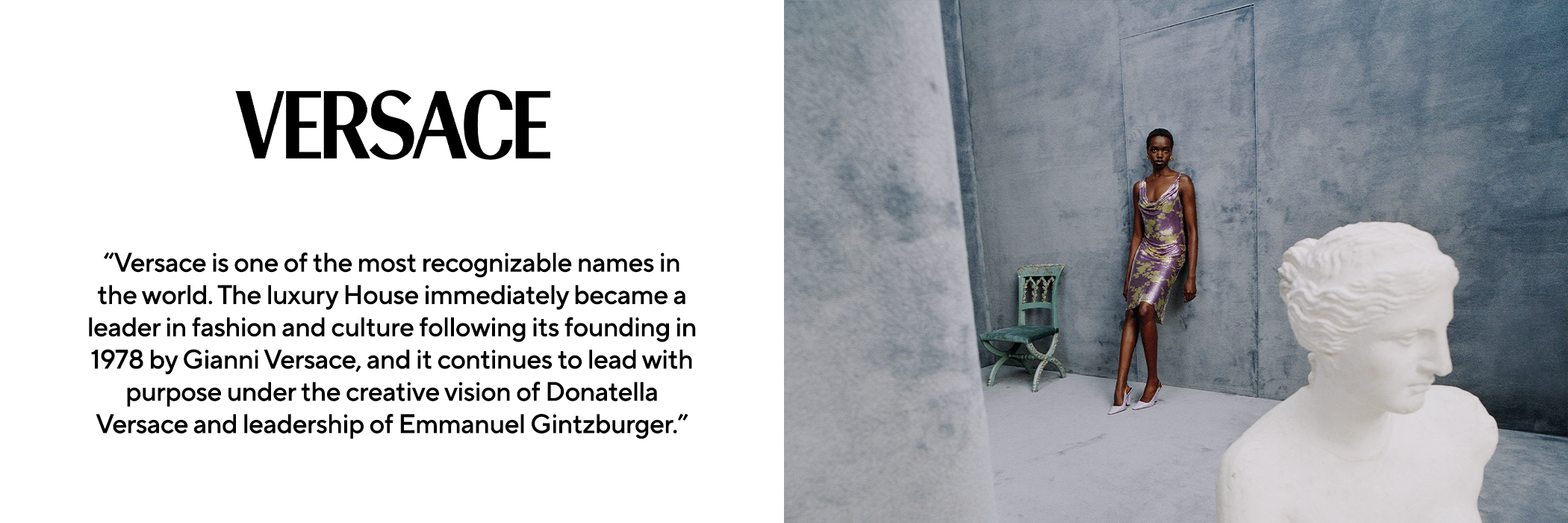 Versace’s energy comes from its clash of irreverent references. The tension between classical and contemporary; Italian tradition with the latest innovation; rock music with royalty; myth with today’s celebrity stardom. This unique formula shapes a creative culture that is expressed through now iconic designs, world-leading imagery, true fashion moments, and a heritage of innovative Italian artisanship. The Versace name is identified with a lifestyle and attitude that celebrates uniqueness and the power of a person who feels the ultimate freedom to be themselves.