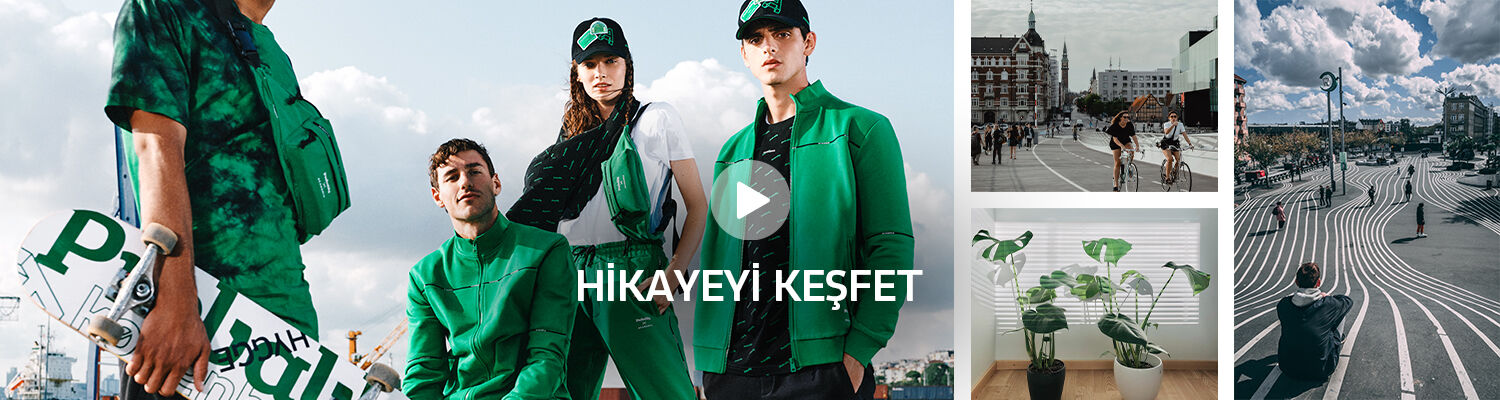 Monogram baskılı tshirt ve formalar; sloganlı hoodie ve t-shirtler, batik tekniğiyle boyanmış yeşil/siyah takımlar, slogan biyeli sweatshirt setlerinden oluşan koleksiyon; çoraptan şapkaya, terlikten bel çantasına uzanan aksesuarlarıyla sokak stiline farklı bir yorum katıyor.