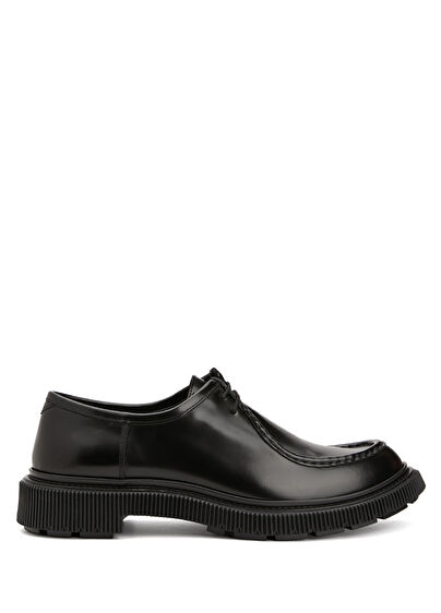 Yuvarlak burun, bağcıklı, deri ayakkabı