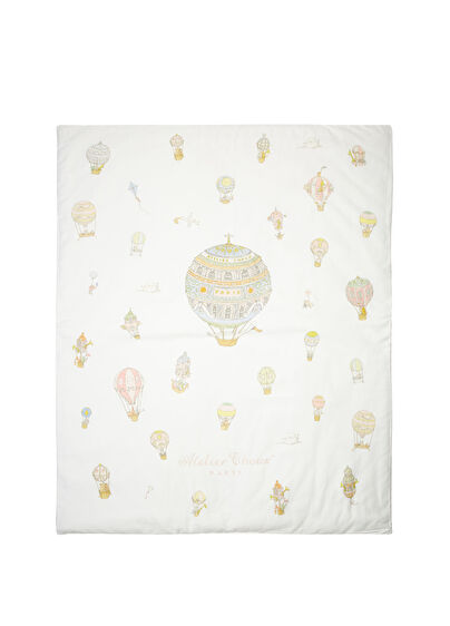 İki özel baskıyla çift taraflı kullanılabilen yorgan, nefes alabilen sıcaklık için 300 g/m² hipoalerjenik polyester ile doldurulmuştur