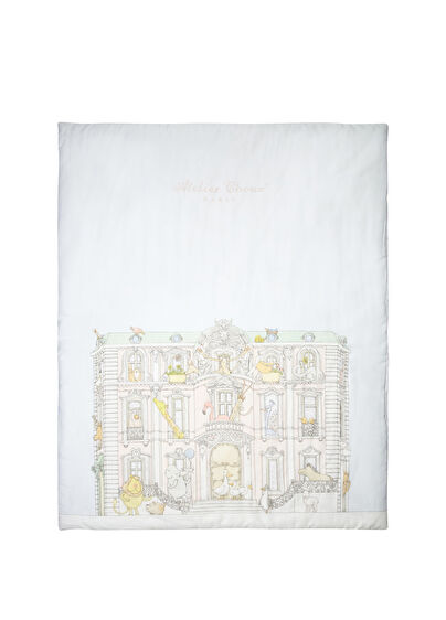 İki özel baskıyla çift taraflı kullanılabilen yorgan, nefes alabilen sıcaklık için 300 g/m² hipoalerjenik polyester ile doldurulmuştur