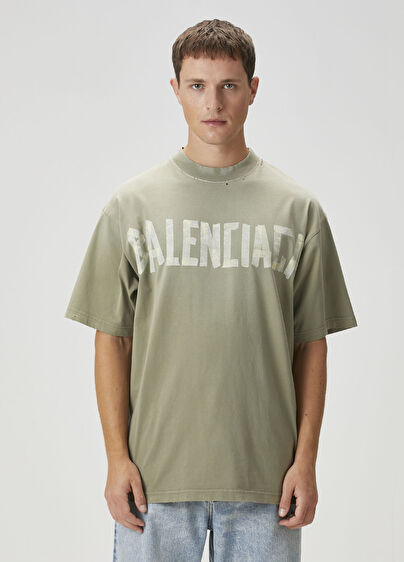 Bisiklet yaka, logo baskılı, yıpratma detaylı t-shirt