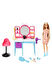 Çocuklar, boyu yaklaşık 15cm olan bu Barbie bebeğin renk değiştiren saçlarıyla da oynayabilirler. Bebek, kazayağı desenli bir elbise ve mavi bot giyer. Bebeğin başını lavaboya doğru eğip 'fön makinesini' soğuk suyla kullandığınızda saçlarının değişir. Kolayca temizlemeniz için su çıkarılıp takılabilir çekmecede toplanır. Aynası, aletleri koymak için rafları, saç yıkama alanı ve sandalyesi bulunan makyaj masası; kuaför salonu oyunlarına ilham verir. Çocuklar iki klipsli toka, üç kumaş saç tokası, bir saç bandı ve bir set lastik tokayla bebekleri için sayısız saç modeli tasarlayabilir.