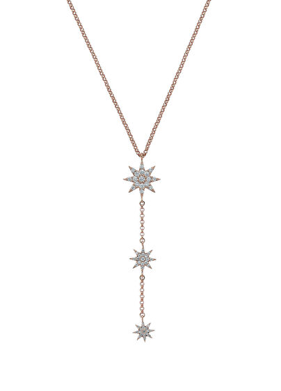 Klips kapatmalı, yıldız formlu, pırlantalı, altın kolye