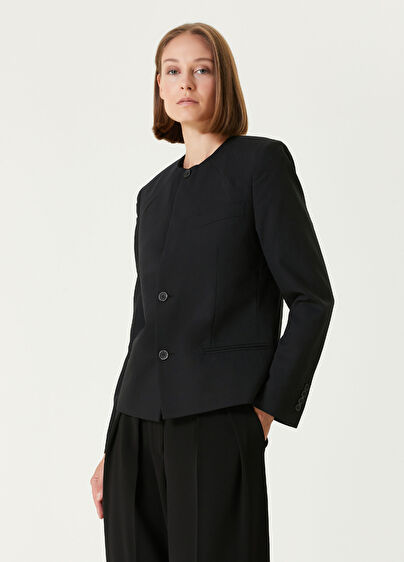 Bisiklet yaka, düğme kapatmalı, yün ceket