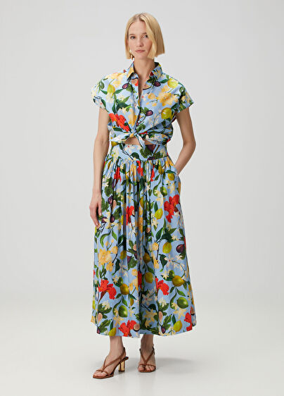 Yüksek bel, çiçek desenli, midi boy etek