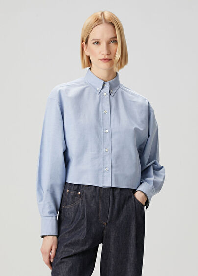 Düğmeli yaka, zincir şerit detaylı, cropped gömlek