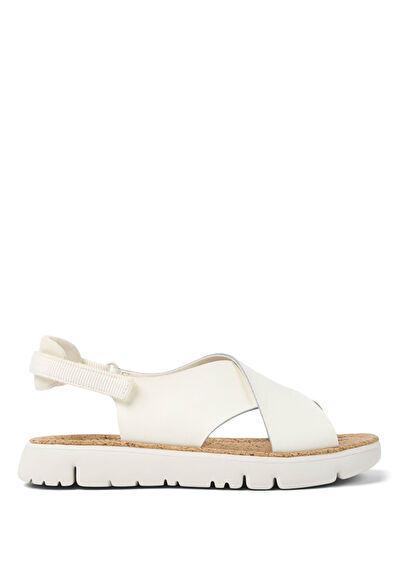 Oruga Beyaz Deri Kadın Sandalet