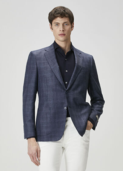 Ekose desenli, çift yırtmaçlı