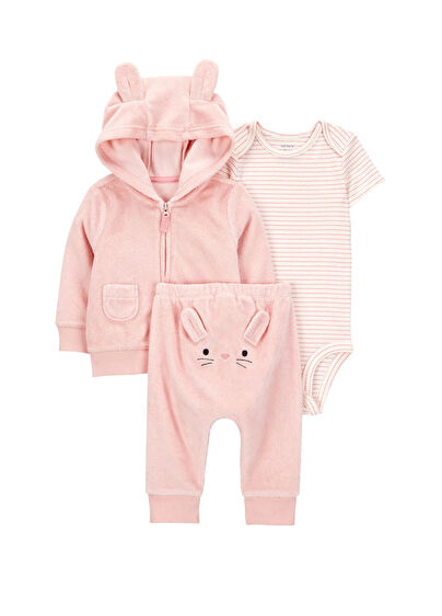 Pembe renkli olan set, 3 parçadan oluşur