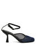 Küt burun, kemer kapatmalı, file dokulu topuklu ayakkabı