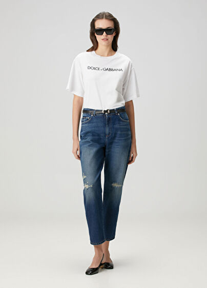 Yüksek (high-rise) bel, boru (straight) paça jean pantolon
