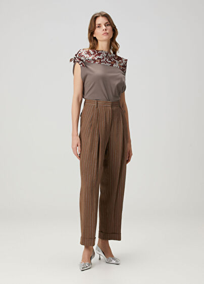 Yüksek bel, duble paça, keten pantolon