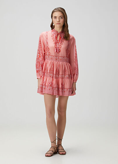 Hakim yaka, etnik desenli, mini elbise