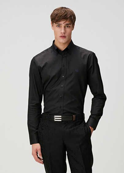 Düğmeli yaka, logo nakışlı gömlek