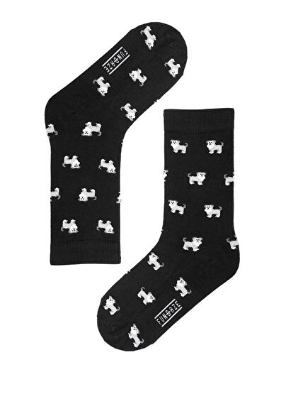 Schnauzer Desenli Siyah Bambu Unisex Çorap