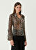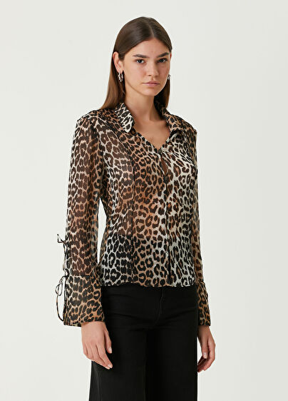 V yaka, leopar desenli, şifon gömlek