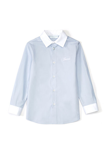 Klasik yaka, düğme kapatmalı, logo nakışlı gömlek