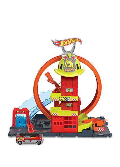 Set, oyun deneyimini geliştirmek için ayarlanabilir bir yangın musluğu hortumu, döner kapı ve garaj kapısı gibi itfaiye temalı özelliklere sahiptir