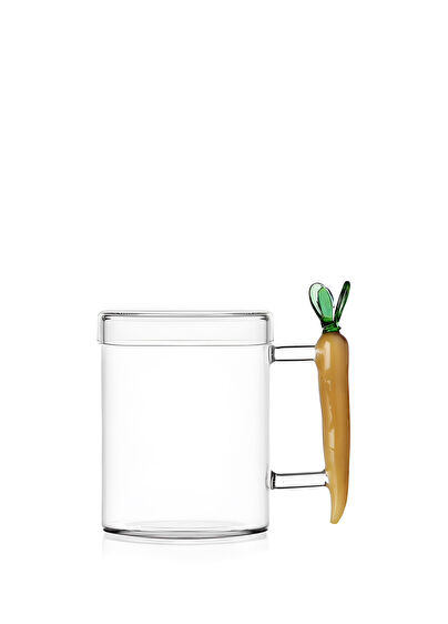 Vegetables koleksiyonundan havuç figürlü ve cam kapaklı kupa