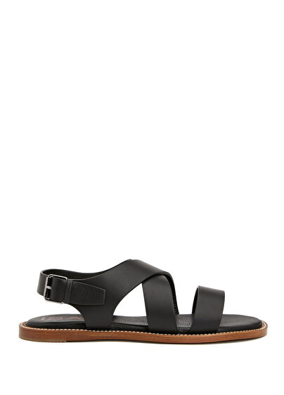 Yuvarlak burun, kemer kapatmalı, deri sandalet