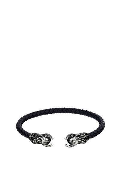 925 ayar gümüş, Leather Cuff Odin, hakiki örgü deri cuff bileklik