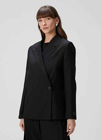 Kelebek yaka, düğme kapatmalı, kruvaze ipek blazer
