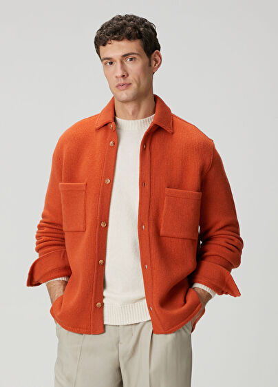 Polo yaka, düğme kapatmalı, yün triko hırka