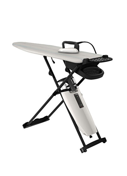 Fan sistemi, kumaşı otomatik olarak ütü masası üzerinde sabit tutar ve kırışıklık oluşumunu önlemek için bir hava yastığı oluşturur.